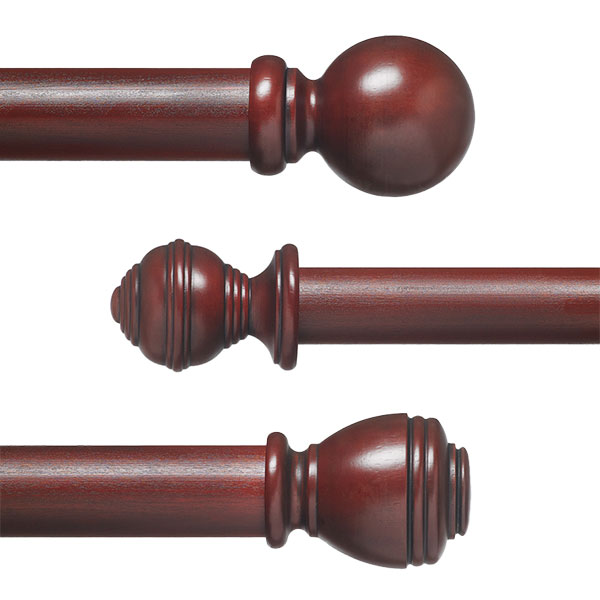 Featuring richly finished American-grown hardwood, these 1 3/8" and 2" diameter rods are custom made to your specified length as a standard or traversing rod, available in up to 6 finial styles per size and 7 finishes.